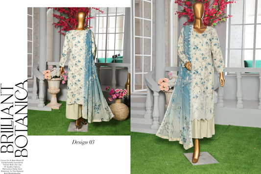 Diamond White Luxury Visocse Emrbroided 3 Piece D#3
