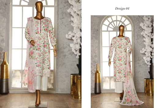 Diamond White Luxury Visocse Emrbroided 3 Piece D#4