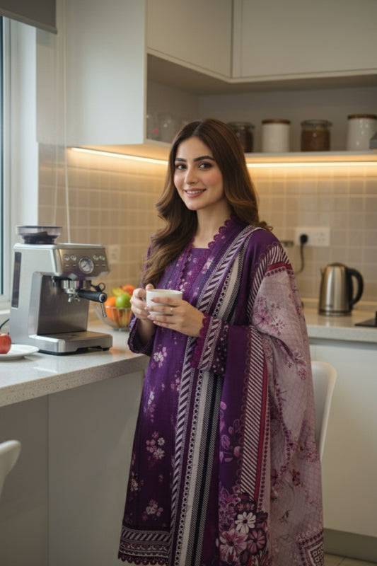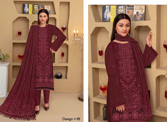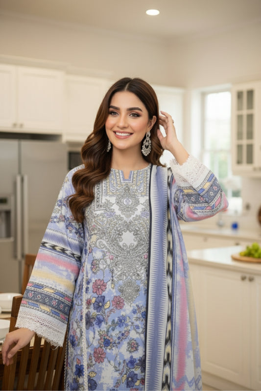 Diamond White Luxury Visocse Emrbroided 3 Piece D#5