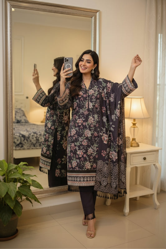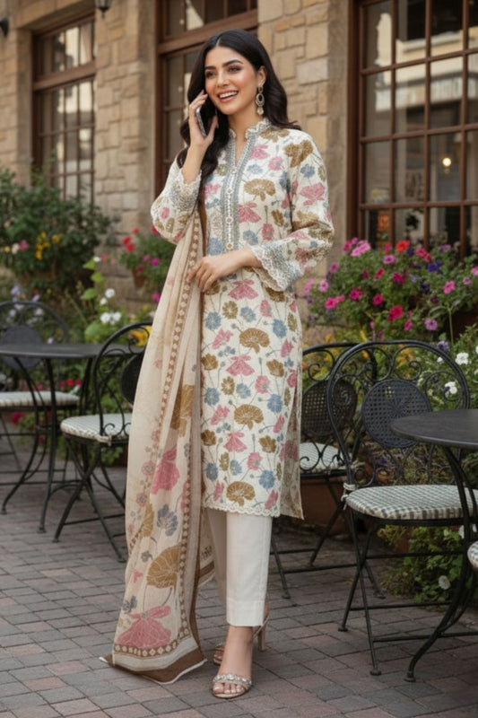 Diamond White Luxury Visocse Emrbroided 3 Piece D#3