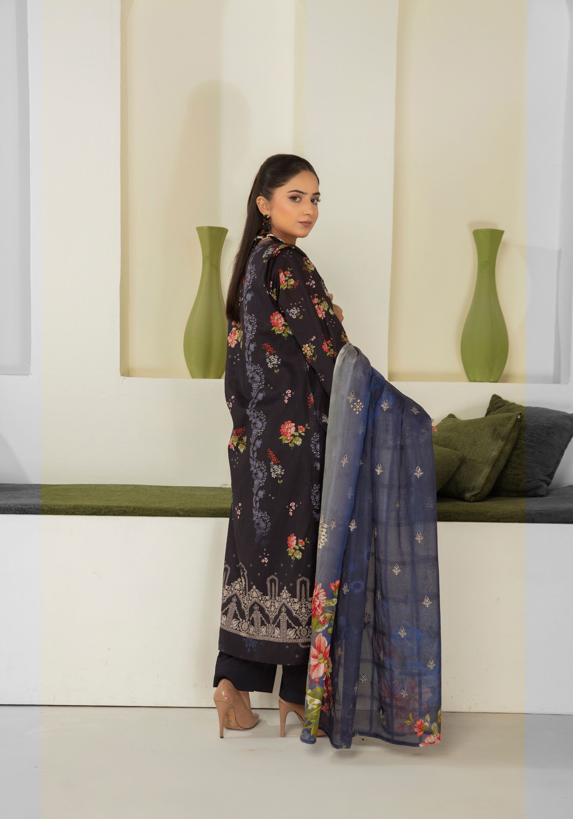 Premium Lawn Digital Tana Doria Printed Shirt With Front Embroidered