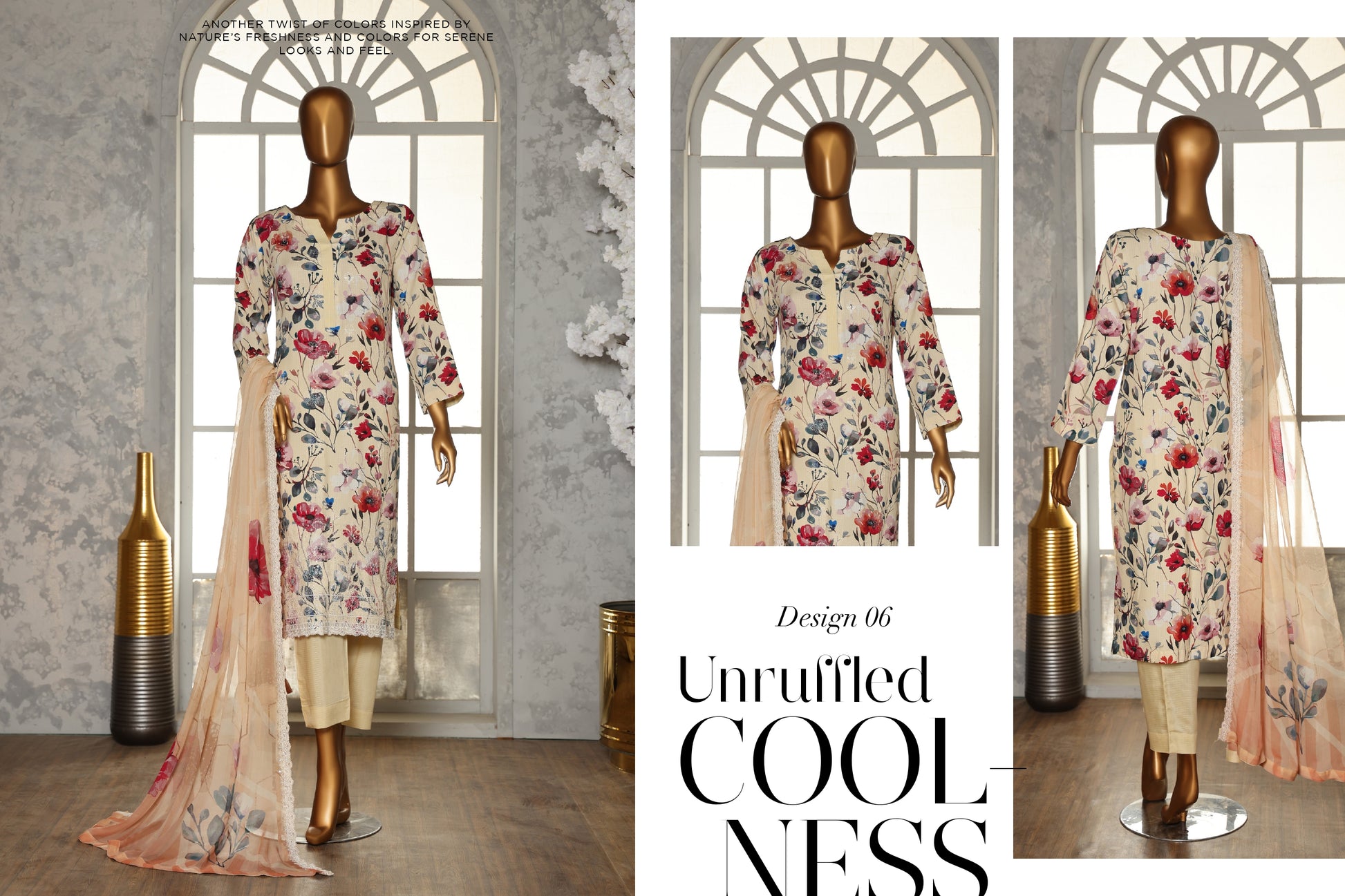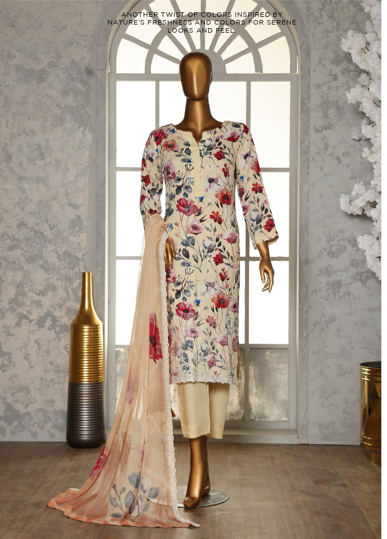 Diamond White Luxury Visocse Emrbroided 3 Piece D#6