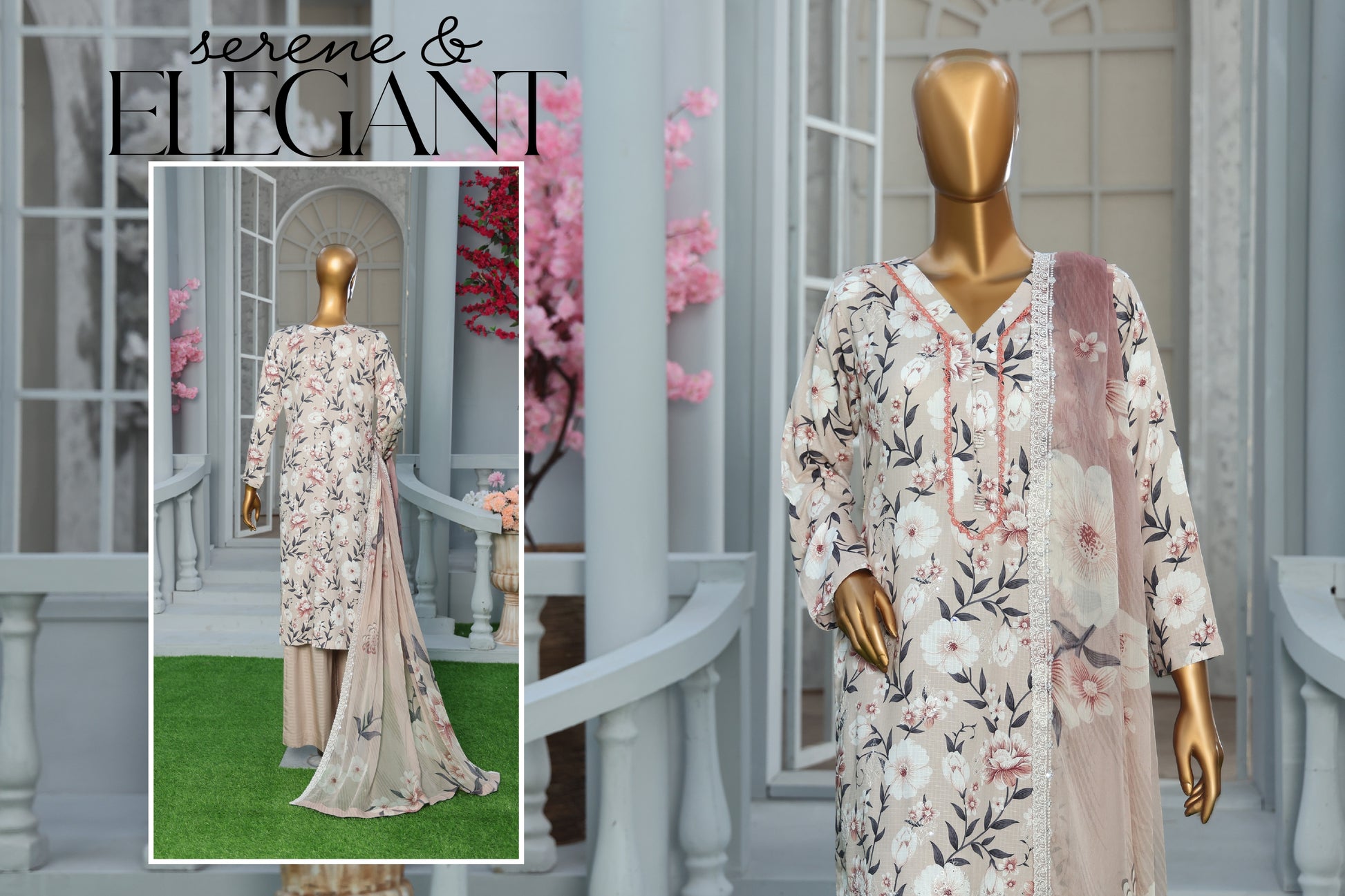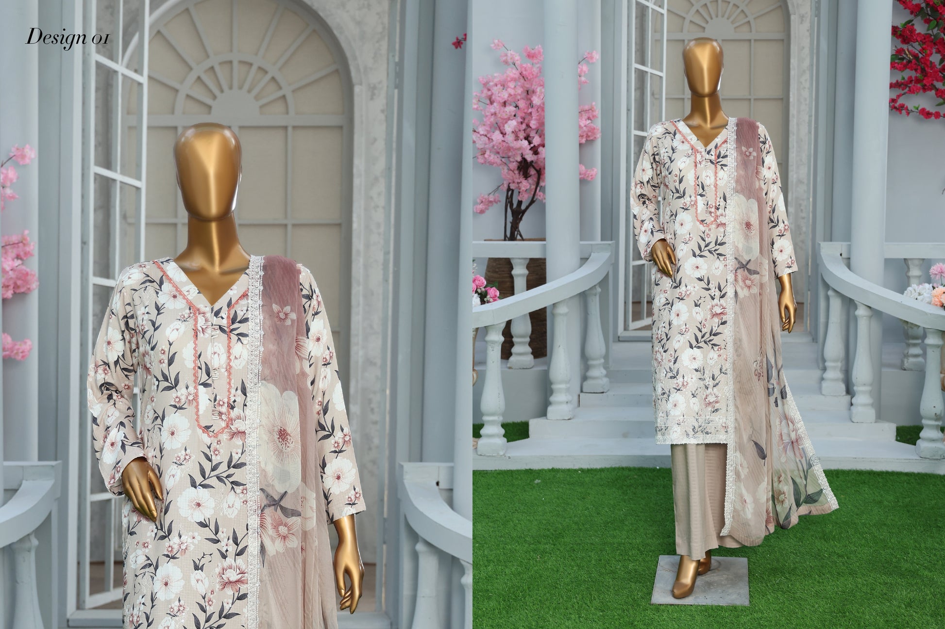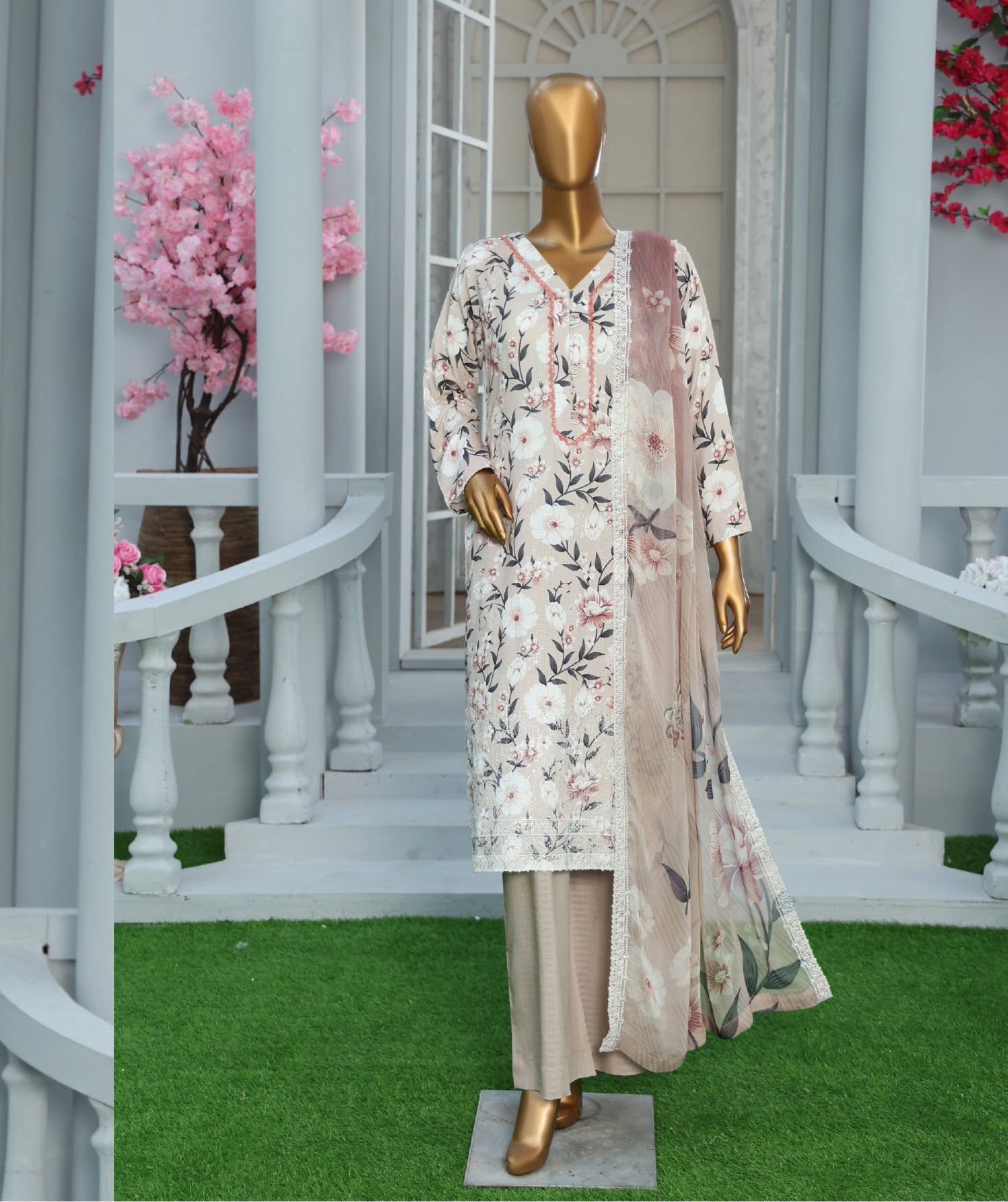 Diamond White Luxury Visocse Emrbroided 3 Piece D#1