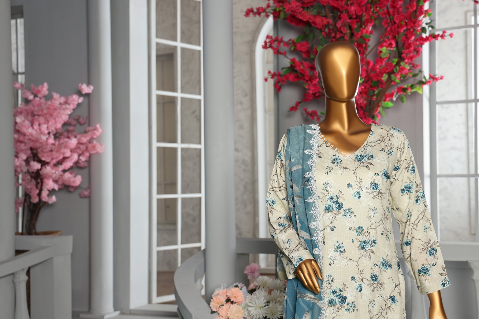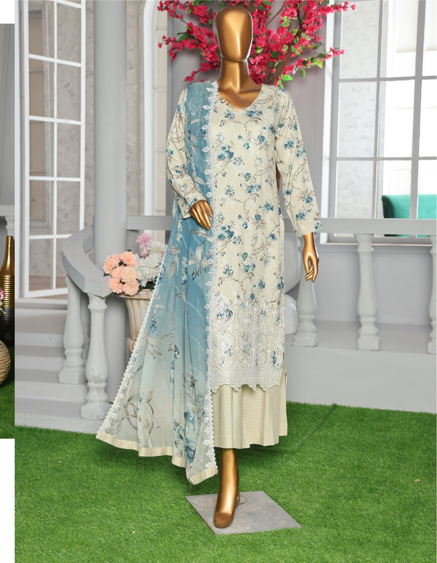 Diamond White Luxury Visocse Emrbroided 3 Piece D#3
