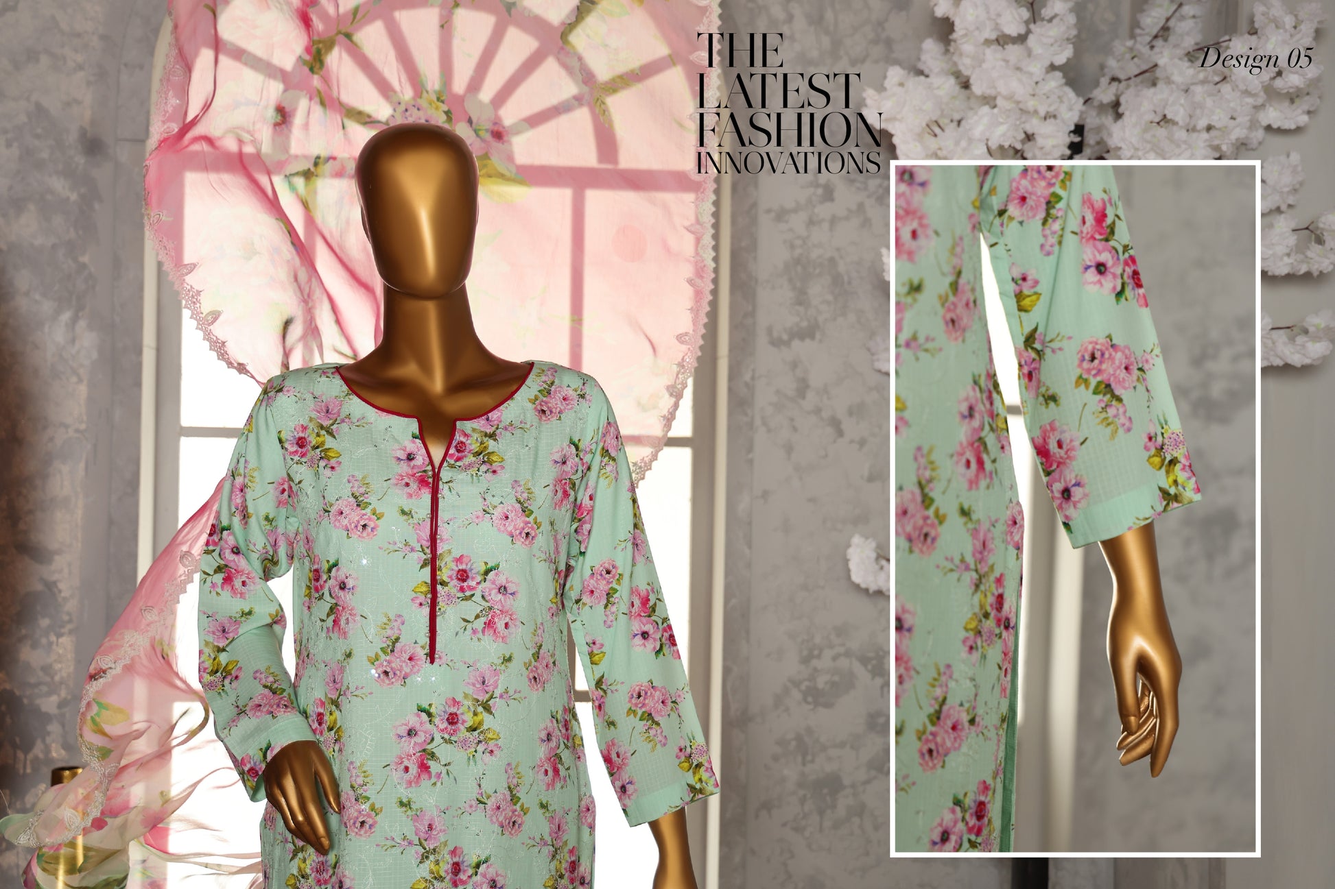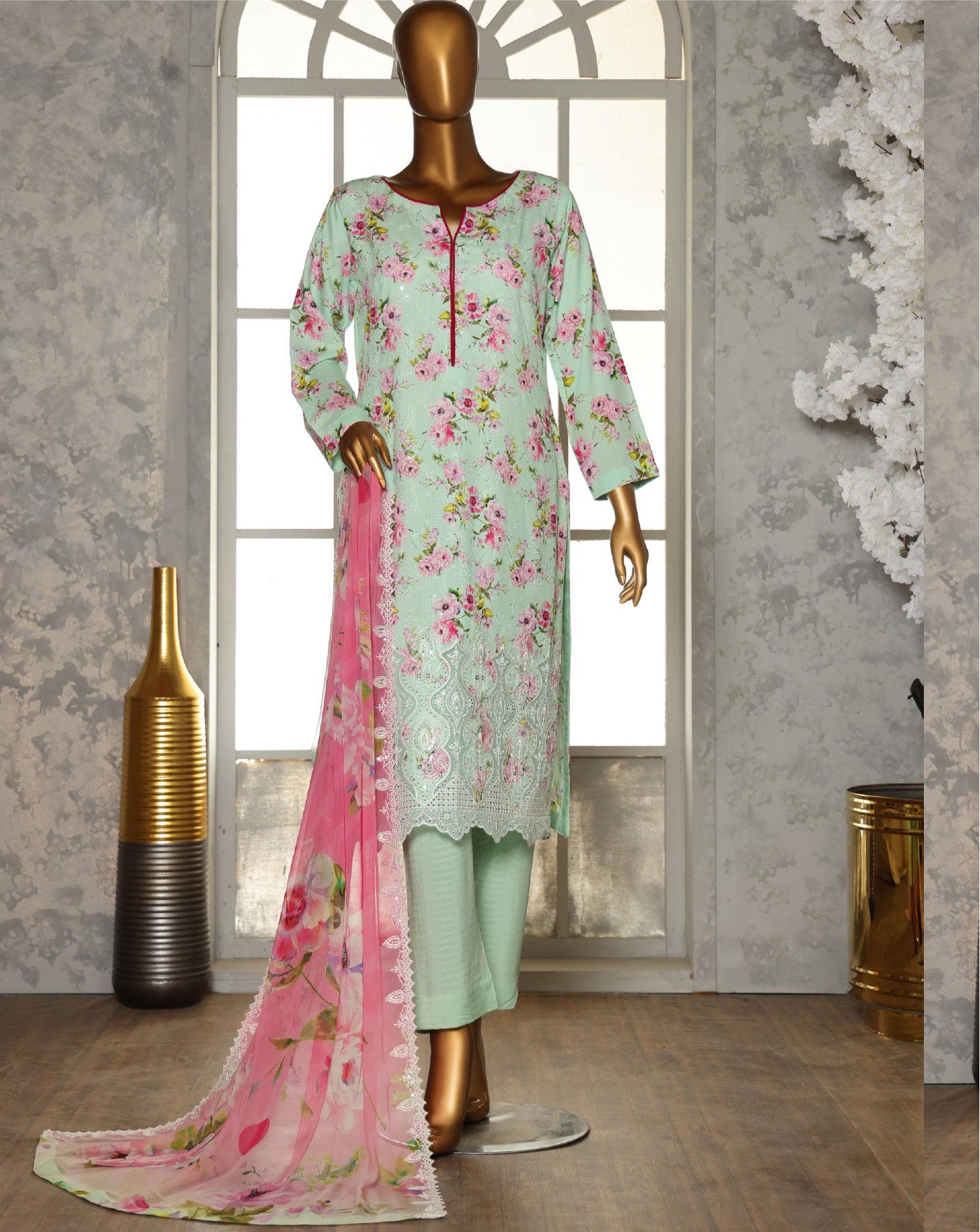 Diamond White Luxury Visocse Emrbroided 3 Piece D#5