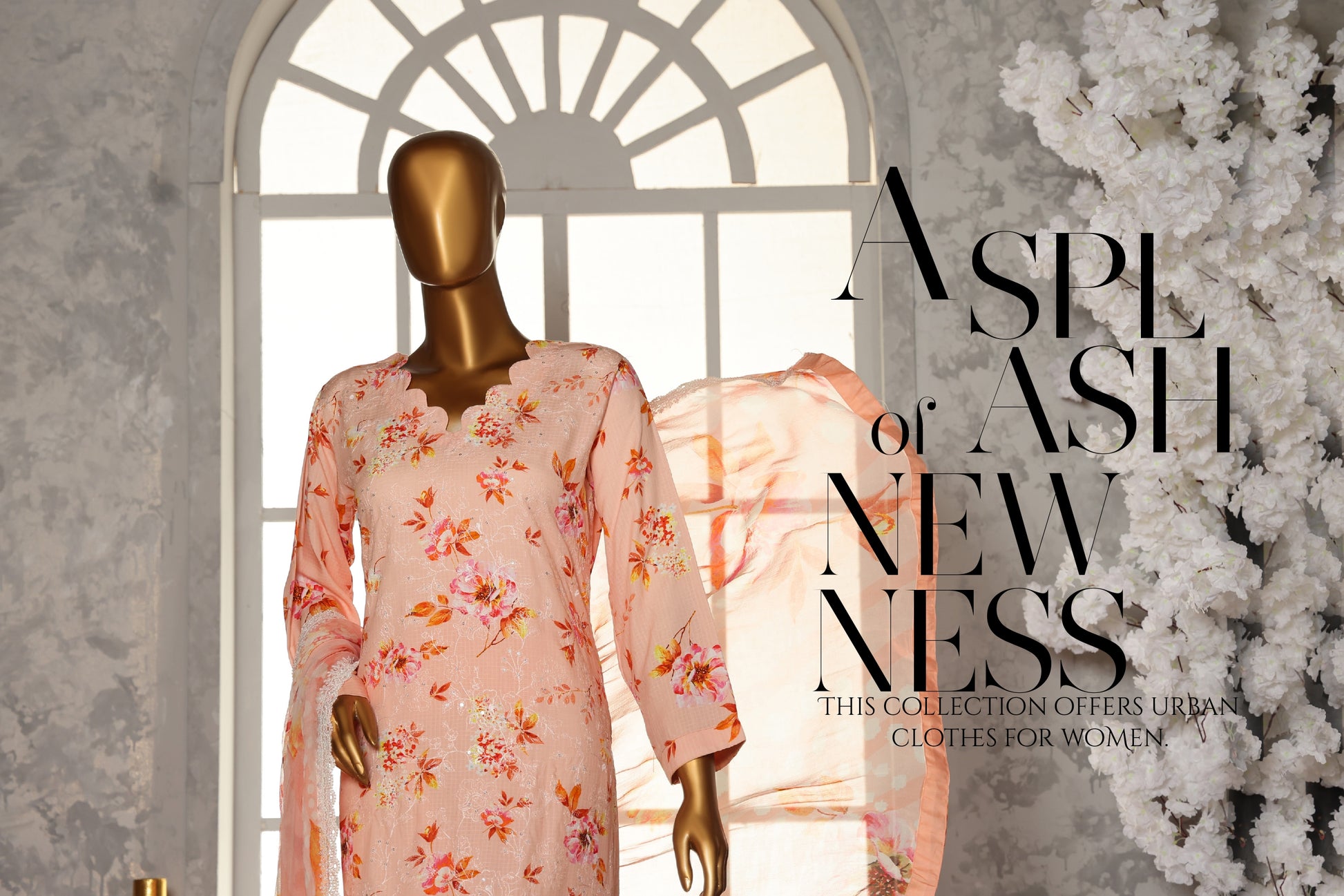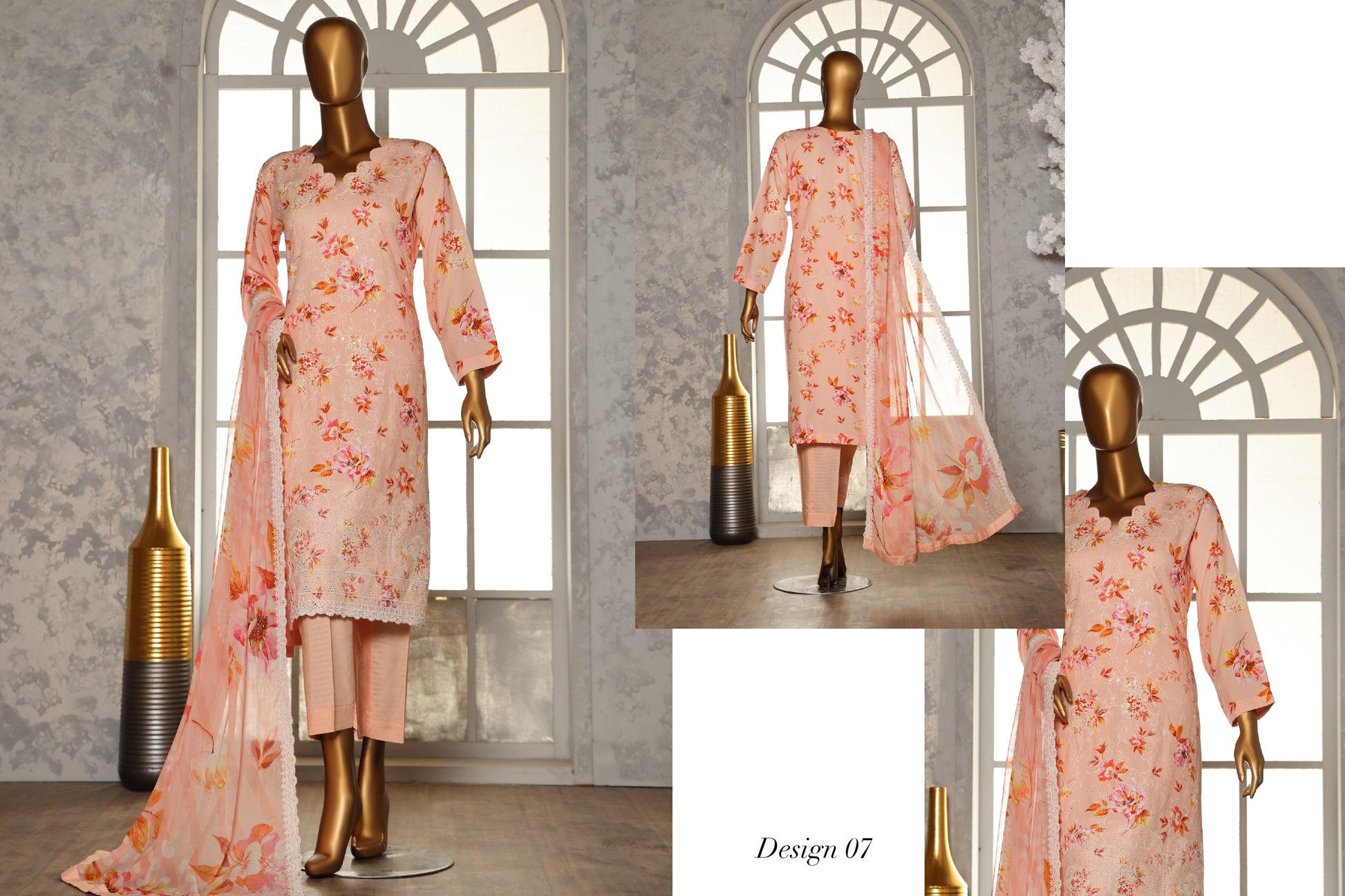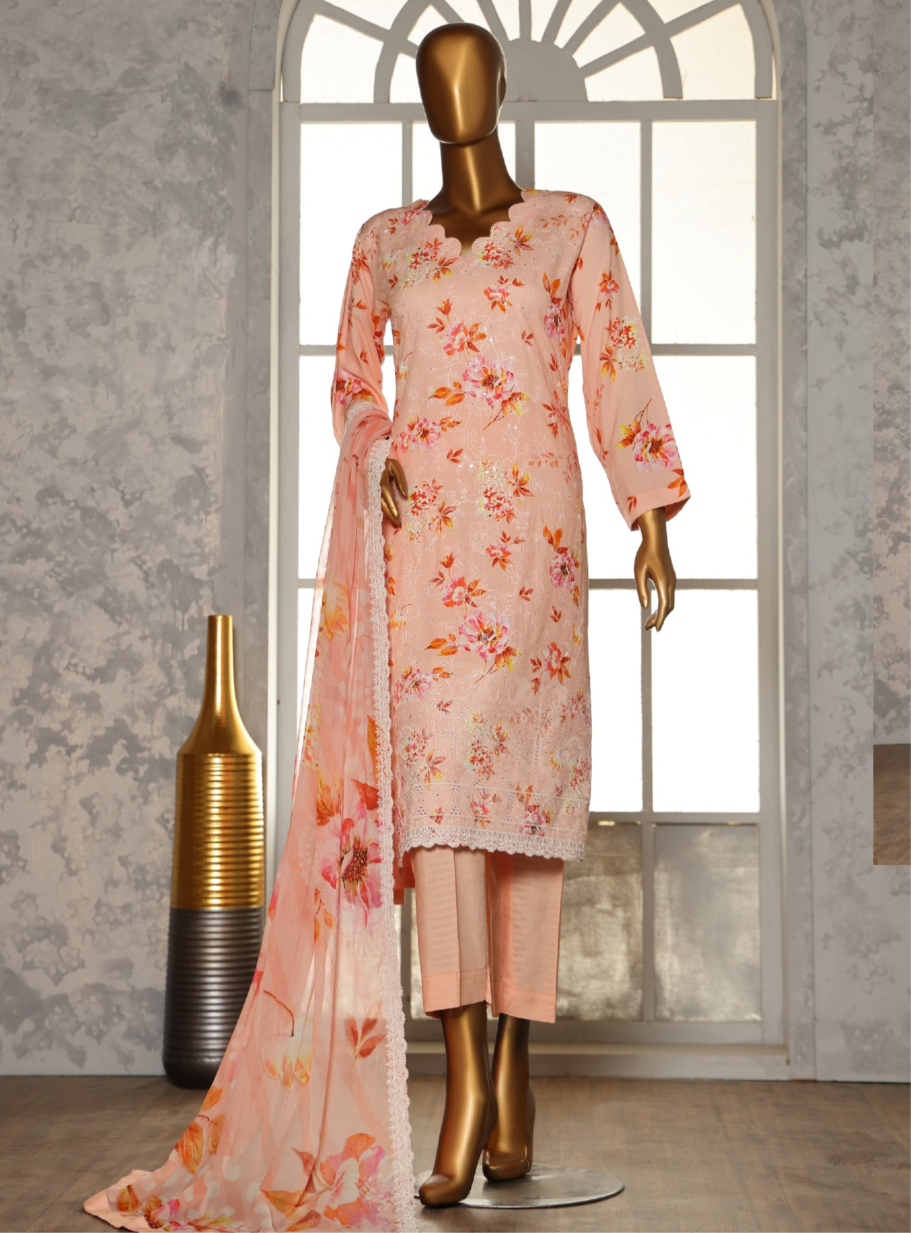 Diamond White Luxury Visocse Emrbroided 3 Piece D#7
