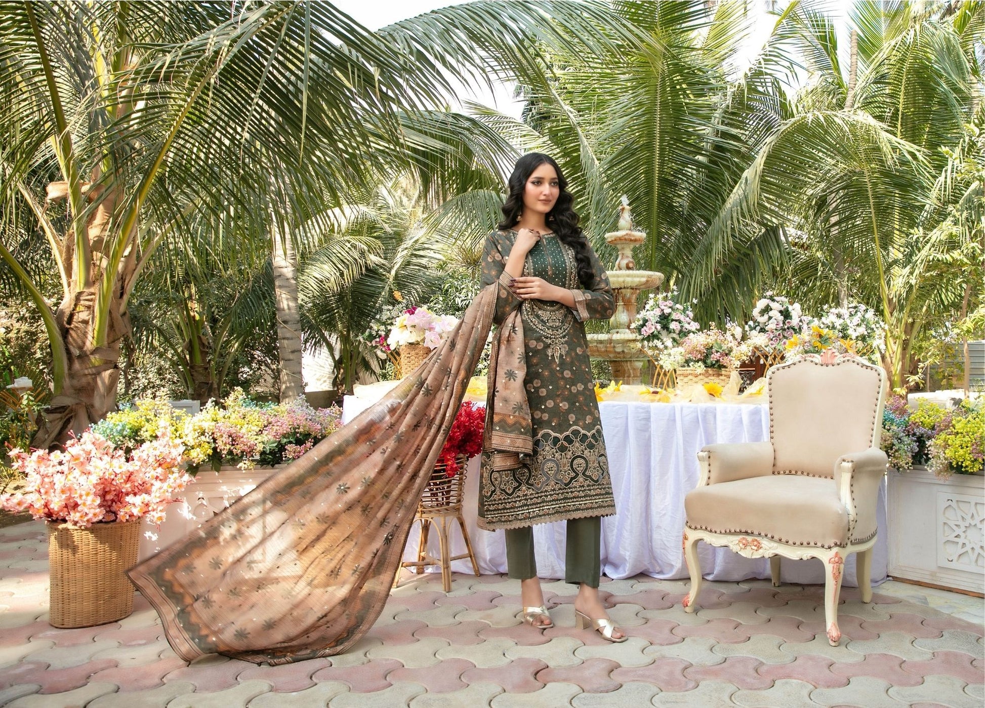 Printed lawn chatta Embroidered duppatta