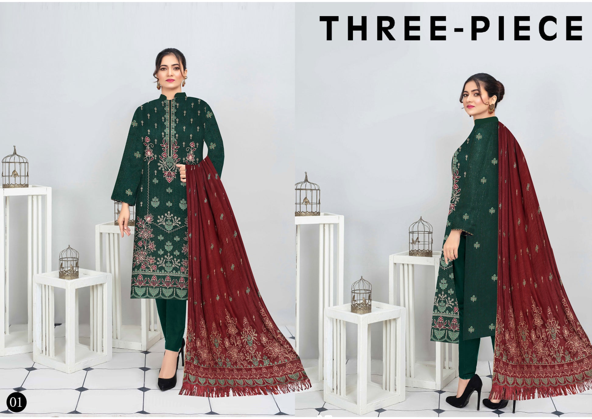 With Pure wool leather Embroidered Contrass Shawal