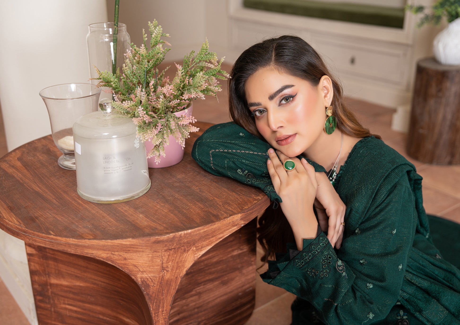 Rubab Peach Leather Embroidered D-6