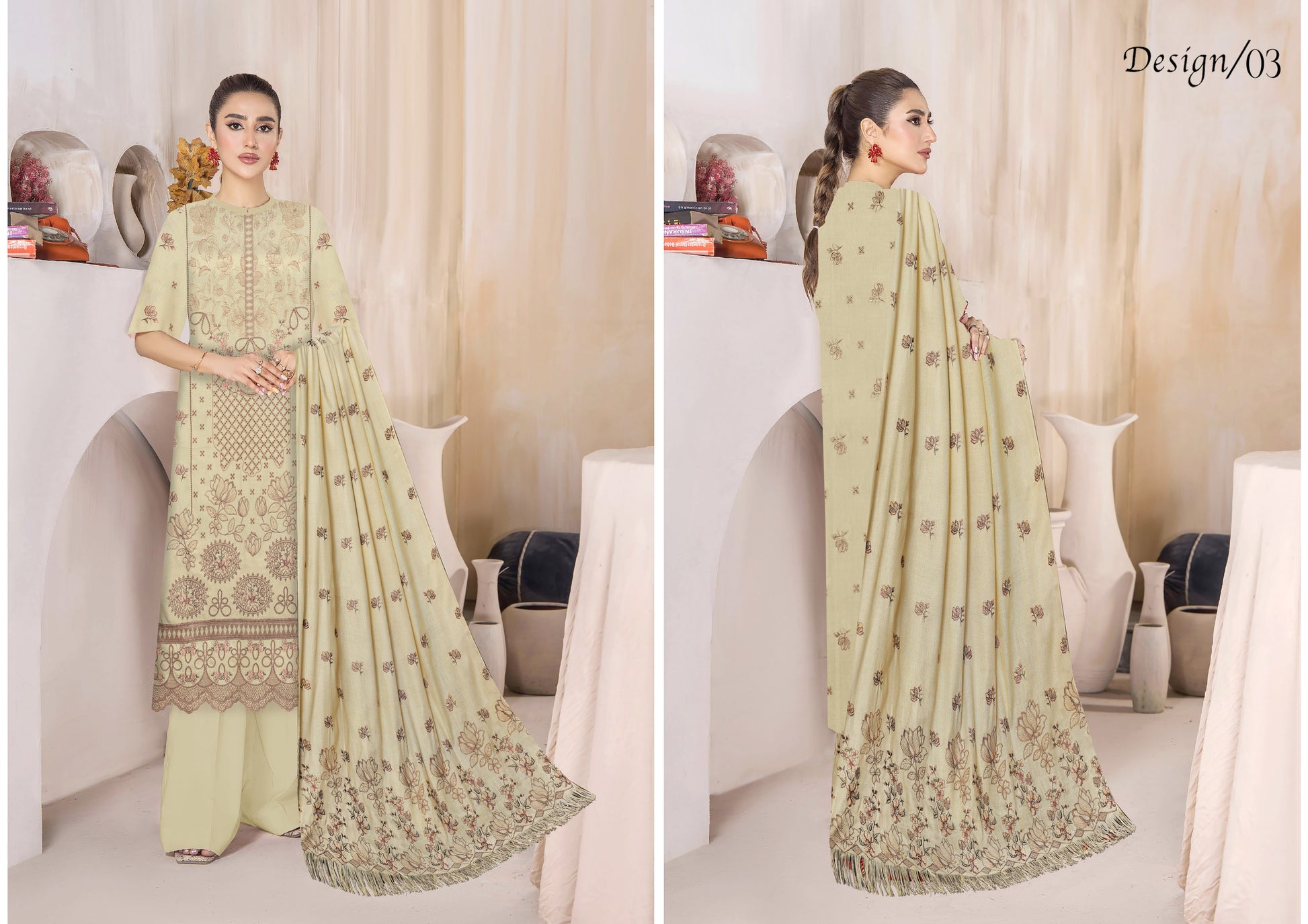 With Pure wool leather Embroidered Shawal